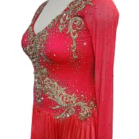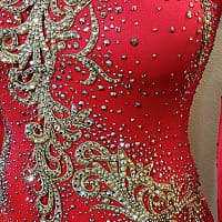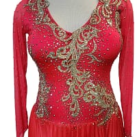 What sets this dress apart is its unique design featuring a front zipper discreetly nestled behind delicate lace, adding an unexpected element of sophistication. Unleash your confidence and make a bold statement on the dance floor with a dress that seamlessly blends elegance, innovation, and the timeless allure of Flaming Red. Elevate your performance with this extraordinary ballroom dress, where every detail is a testament to style and individuality. Contact us about this ballroom dress for more information.