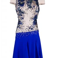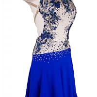 Elevate your performance with Manon, a captivating professional ballroom Latin dance dress designed for sizes 4-6. This exquisite costume is a symphony of blue and white, creating a visual harmony that’s both elegant and eye-catching.