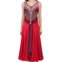 • Rich red stretch fabric with elegant flow and subtle sparkle