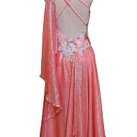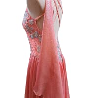Elevate your dance with our exquisite ballroom dress handcrafted with real silk chiffon in a breathtaking coral hue. Designed for sizes 6-8, this gown combines timeless elegance with contemporary flair. Thousands of meticulously placed crystals adorn the dress, ensuring you sparkle and shine with every movement on the dance floor. Immerse yourself in the luxurious feel of silk chiffon, and let the radiant coral color and dazzling crystals make a statement of glamour and sophistication.